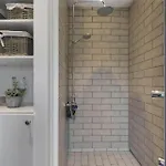 The Blavand holiday home includes a bathroom with a shower and a washing machine.